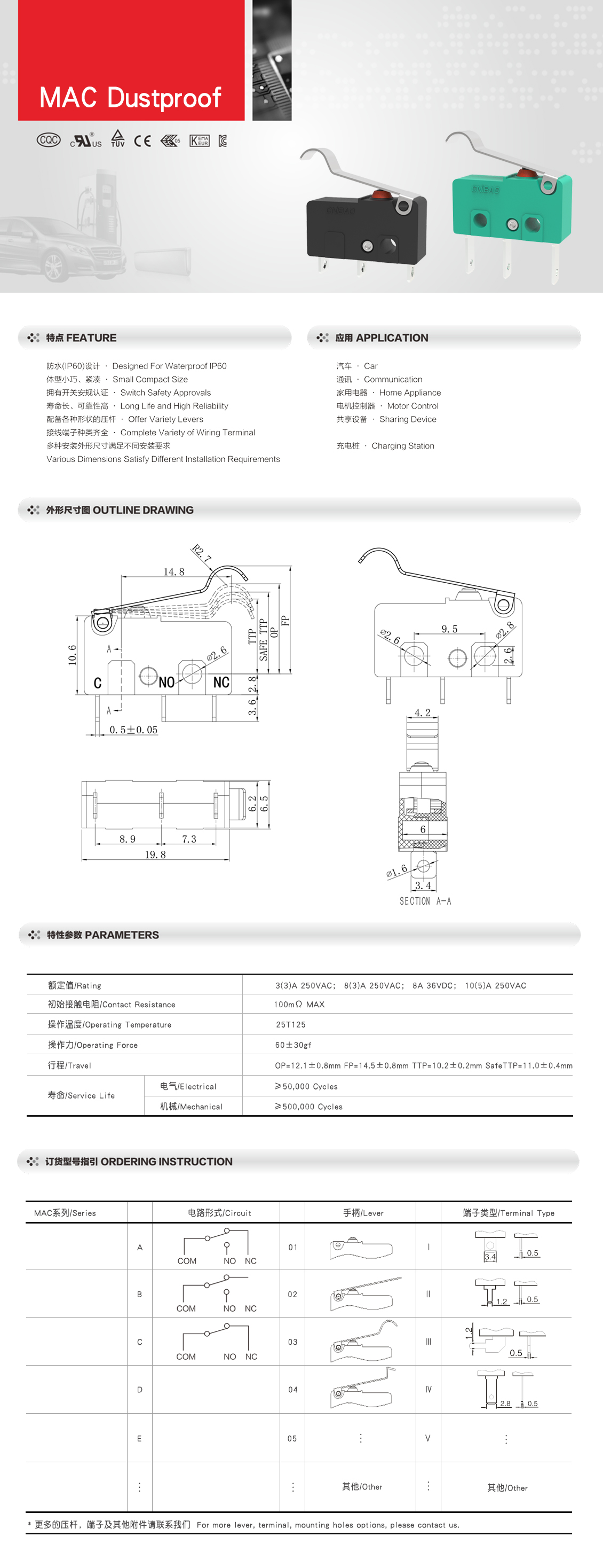 MAC系列 防尘微动开关 Ⅲ型外壳 IP60