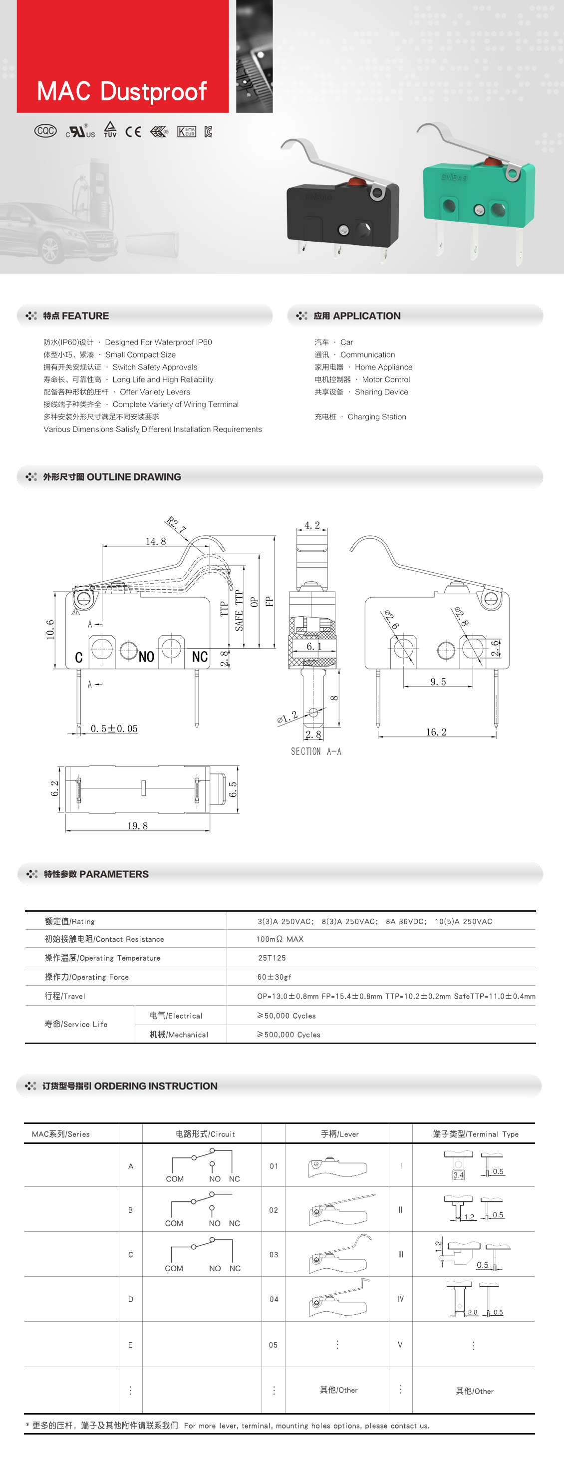 MAC系列 防尘微动开关 Ⅲ型外壳 IP60