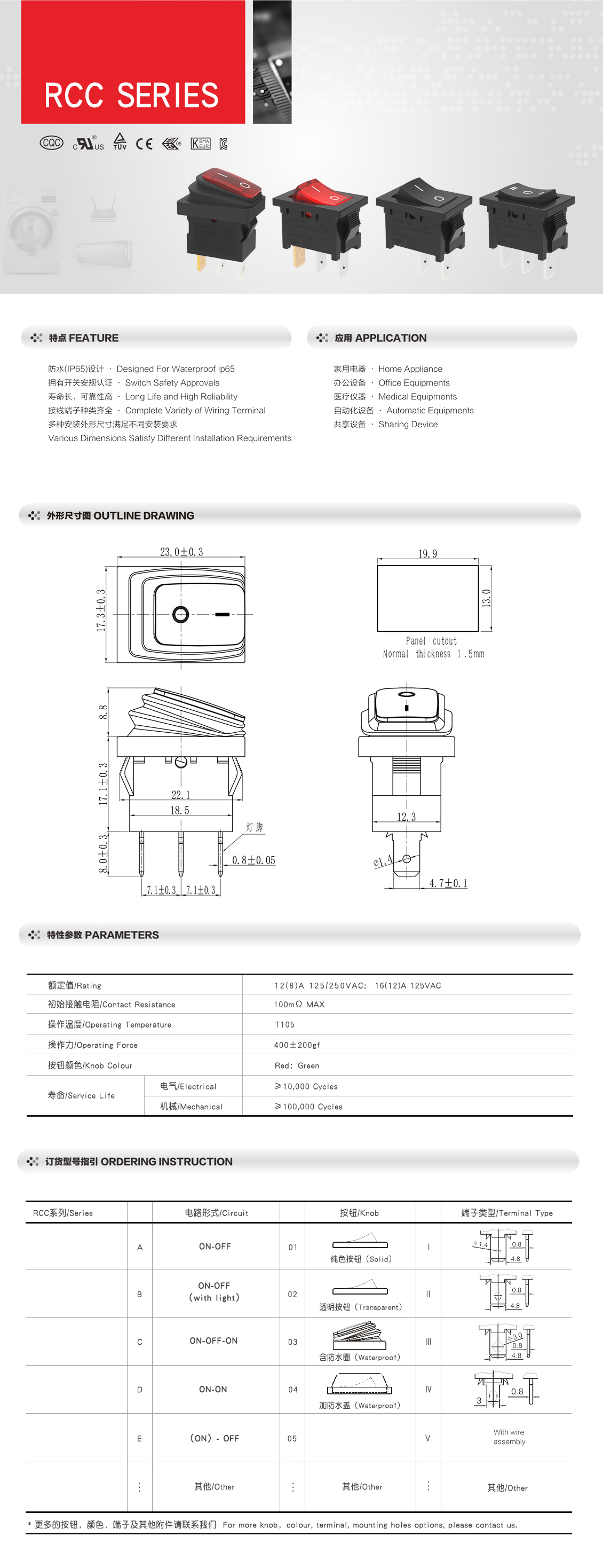 RCC系列 防水IP65船型开关 方形翘板开关KCD1 ON-OFF