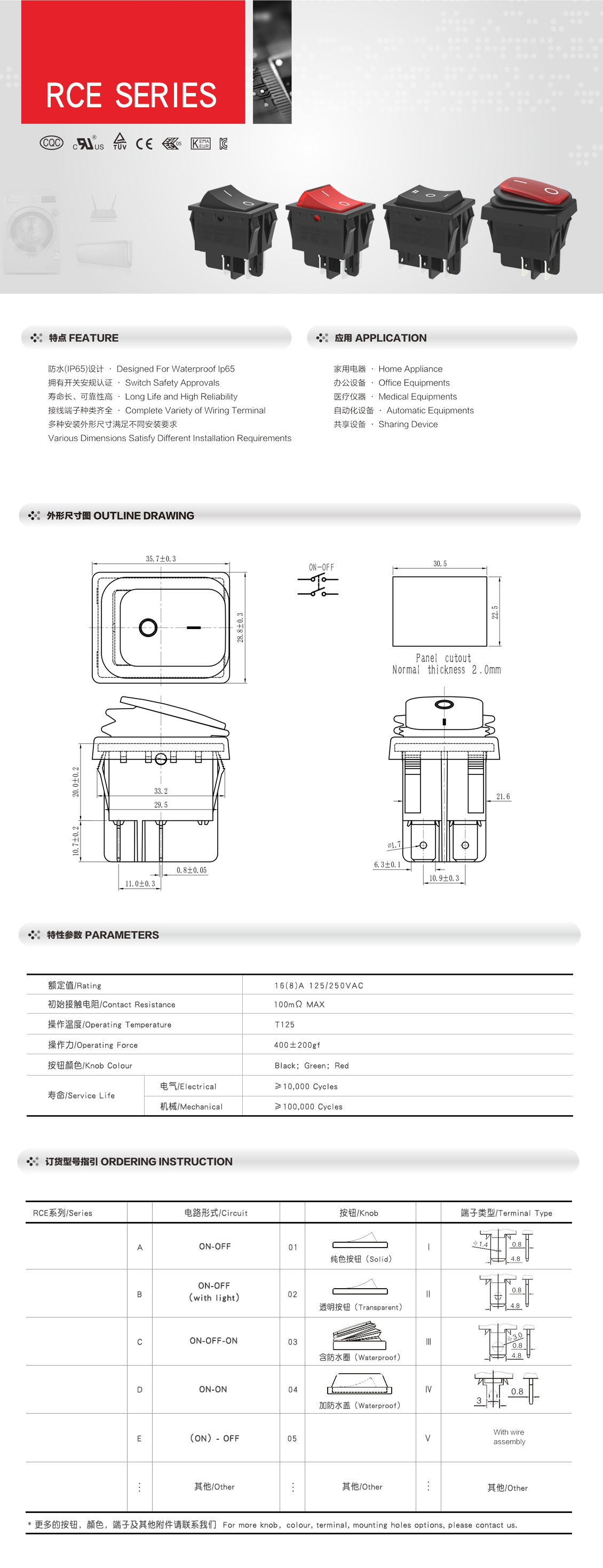 RCE系列 防水IP65船型开关 方形翘板开关KCD4 双刀双掷ON-OFF
